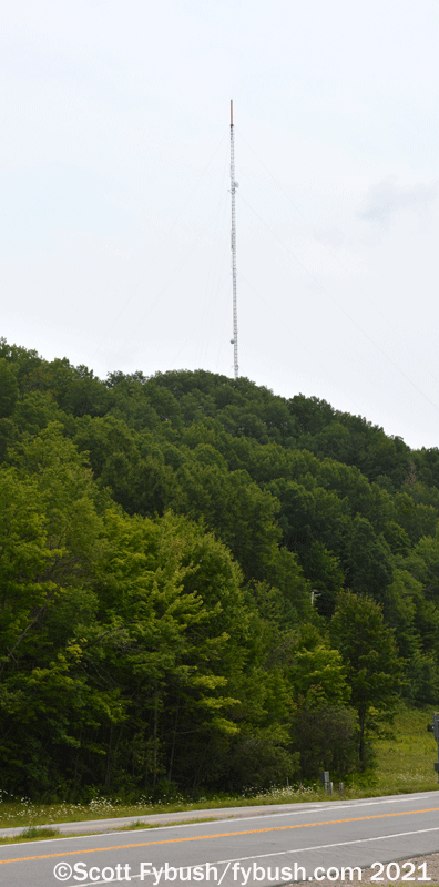 On one of those trips earlier in the year, we made it up to half of Watertown’s TV/FM antennas, mostly located on the plateaus east of Watertown. But we missed the southernmost cluster of those towers, a few miles south (and across the Lewis County line) from the Champion Hill site of WWNY-TV (Channel 7) and several others.