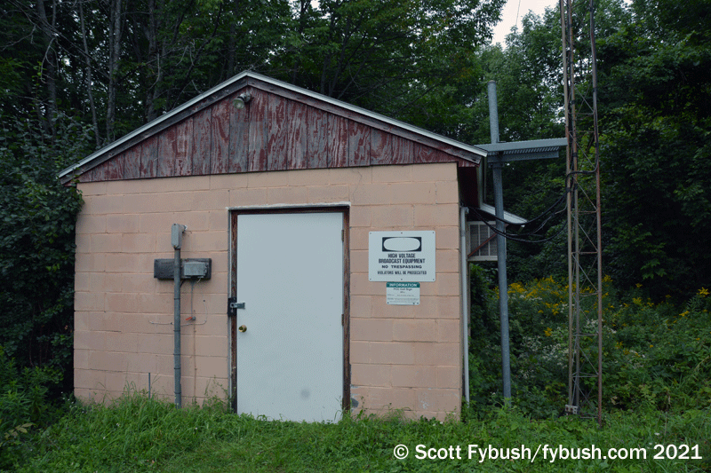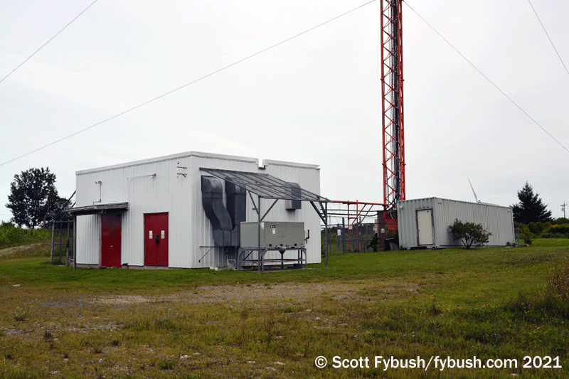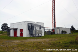 These days, WPBS shares its building and tower with WJNY (90.9), the Watertown relay of Syracuse-based classical station WCNY-FM (91.3); right next door, another Syracuse-area public radio network, Oswego-based WRVO, has its separate building and tower for its Watertown relay, WRVJ (91.7). (What’s with all the J calls? Because these stations serve Jefferson County, even if they’re physically located in Lewis County.)