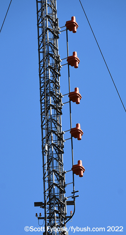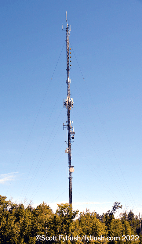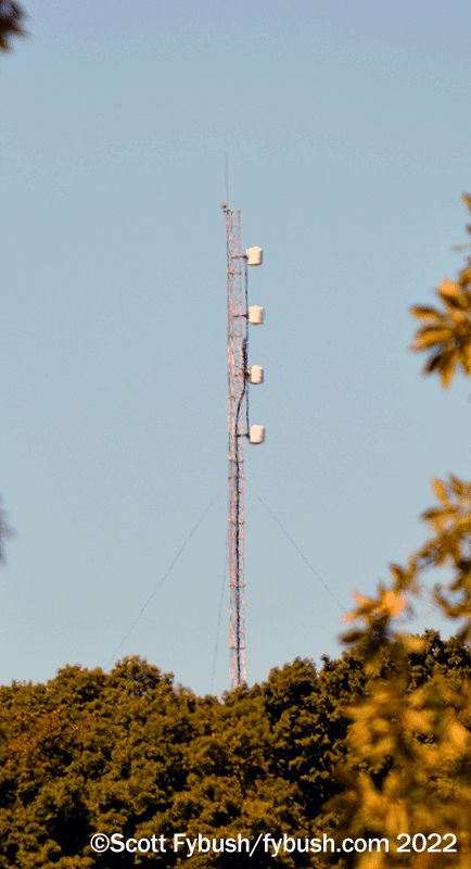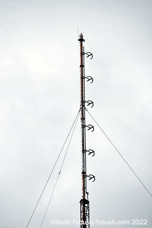 It’s not easy to get all the way back to Bell’s CKLH site off King Road at the edge of the escarpment, so we get our long shot from a nearby dog park with a terrific view over Hamilton and the end of the lake. For such a large signal, CKLH (which is “Move 102.9” these days, with hot AC) was a relatively late arrival; it took 20 years of applications before venerable Hamilton station CKOC (1150) was finally granted the FM frequency and put it on the air in 1986.