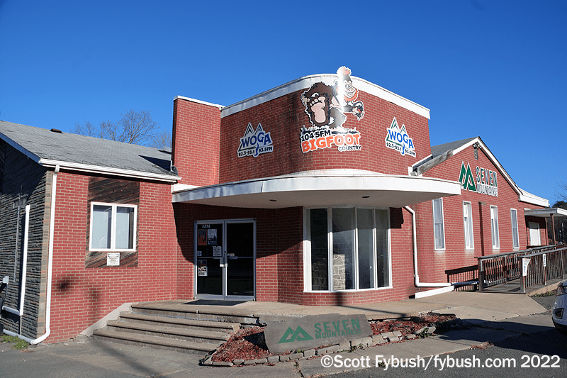 WOGA is the northernmost of these signals, up a narrow windy road on a hill just east of the new 15 freeway outside Tioga, Pennsylvania; from up there, it puts a listenable signal all the way from Mansfield up into Corning. This class A signal hit the air in 1998 as WNBQ, a simulcast of WNBT over in Wellsboro.