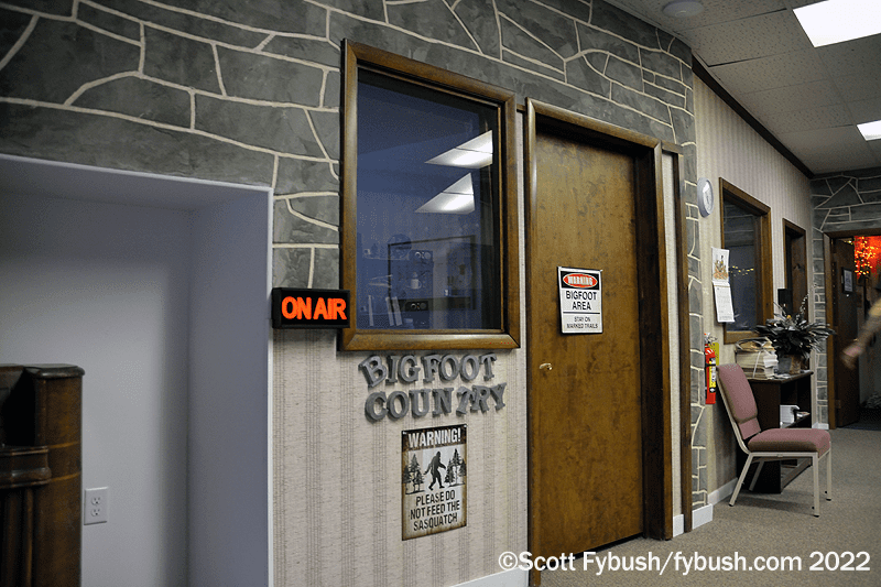 The studios are right off the lobby in front: one on the side for “Bigfoot Country,” heard on WNBT (104.5) in nearby Wellsboro, and a production studio in the back corner.