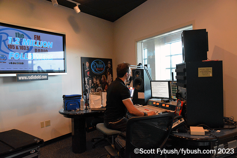 Inside, there’s live talent most of the day, plus some very well thought out video signage promoting the station’s substantial social media following.