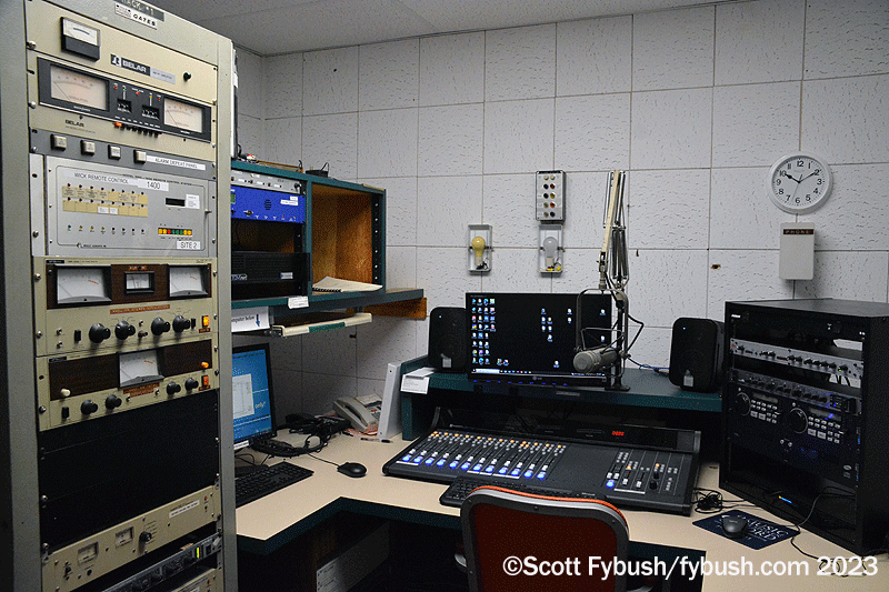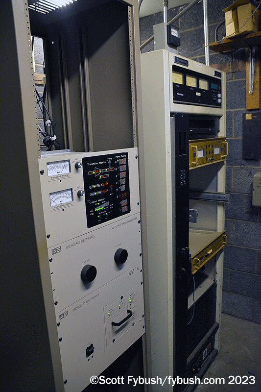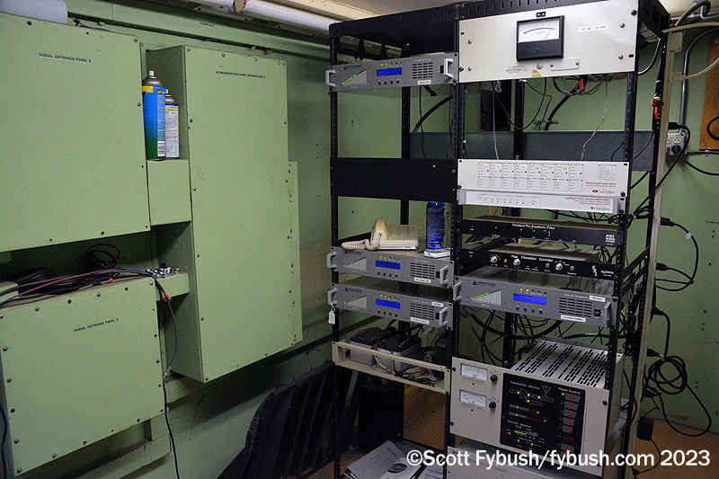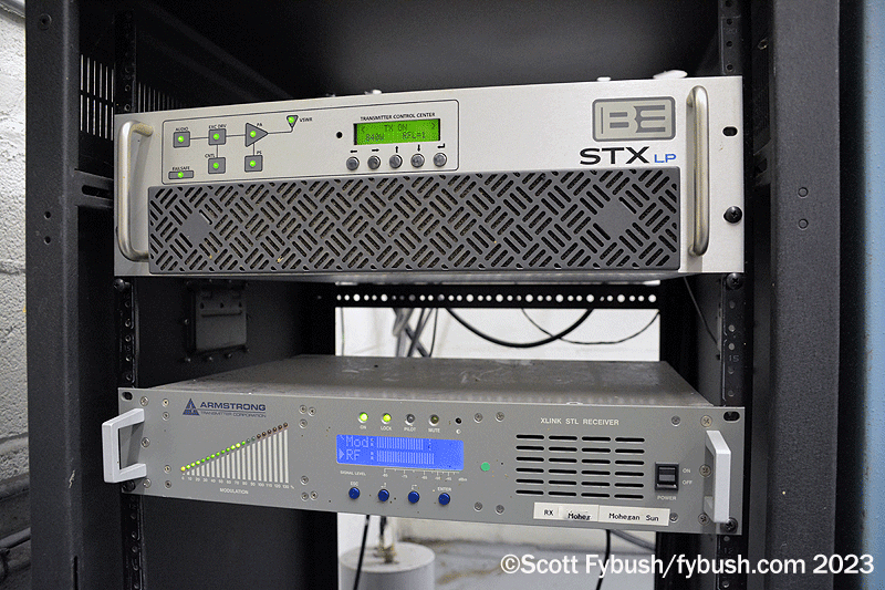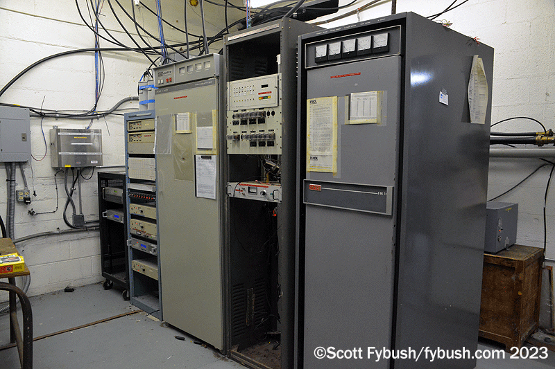 We didn’t get to see the WQPX facility in a locked back room, but we saw WWRR’s room, where two older unused transmitters sit next to the rack with the little BE STX transmitter that actually powers the 104.9 signal these days.