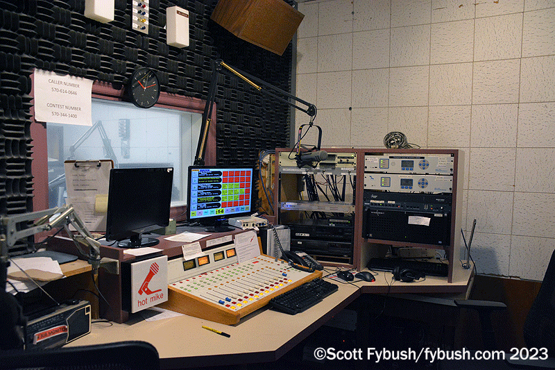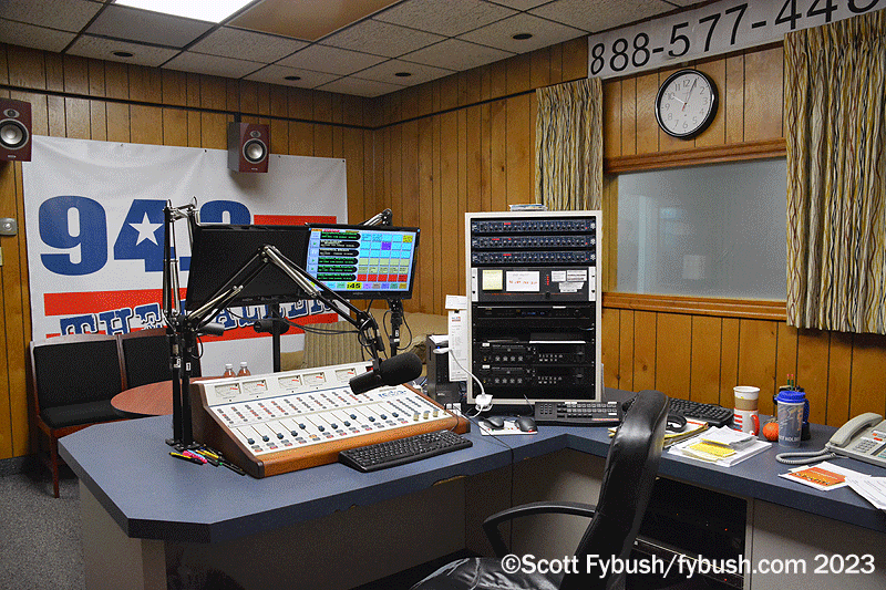 These days, WICK’s automated classic hits format (“the Mothership”) comes from one of the studios here, while another is home to the mostly-syndicated talk of “94.3 the Talker,” WTRW (94.3 Carbondale, which Bold Gold acquired along with WCDL 1440 Carbondale, a simulcast of the Mothership.)