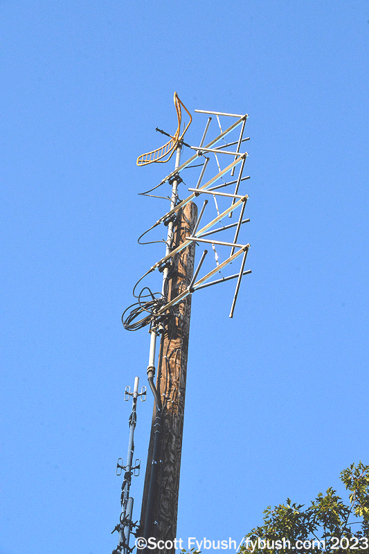 One of the city’s original TV stations, WGBI-TV (Channel 22), hit the air from up here in 1953, bringing CBS to Scranton and much of northeastern PA. Like most of the market’s TV stations, it eventually moved to Penobscot Mountain, which reaches a broader swath of the region, but its original tower and transmitter building eventually saw reuse by WOLF-TV (Channel 38), which hit the air in the 1980s.