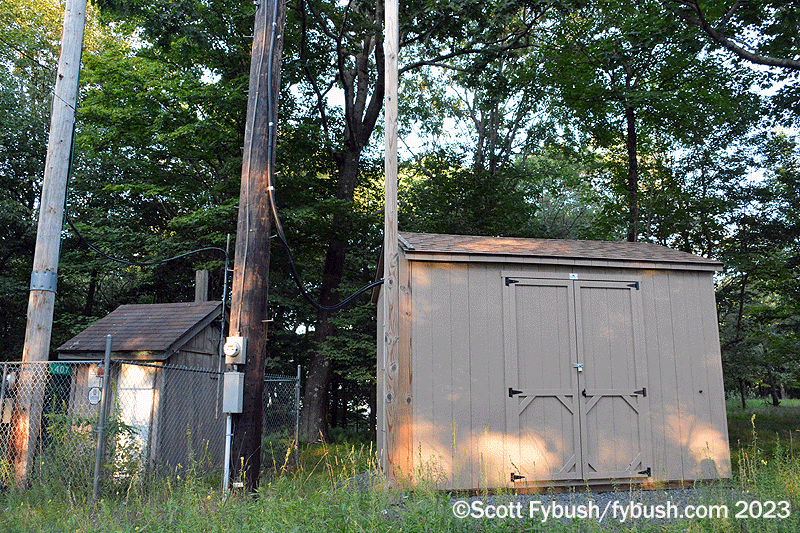 Drive past the vacation homes up here and you find yourself looking at a little garden shed next to a phone pole, and that’s all there is to this class A signal (which also feeds the 105.5 translator in Stroudsburg).