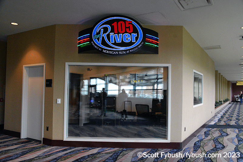 And before we grab lunch with Vince and move along to more Scranton fun, we get to see the WWRR studios in the Mohegan Sun casino. If you’re walking in from the race track or parking garage, you go right down the hall past this showcase window with a huge “105 the River” sign advertising the station.