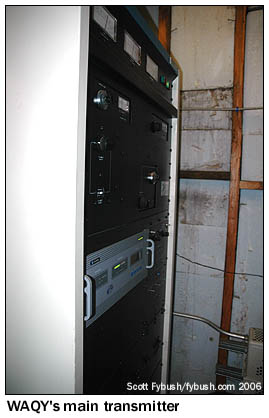 Saga’s WAQY (102.1) was one of the first tenants up here, and its transmitters have long occupied the upstairs room. For a time, it was home to some lower-powered TV as well: W69AQ (Channel 69) operated here in the 1970s and 1980s to bring some additional sports programming (Red Sox and Bruins) into the market as a translator first of WRLP (Channel 32 in Greenfield, a former semi-satellite of WWLP) and then of Boston’s WSBK after the demise of WRLP. Later on, WHTX-LP (Channel 43) broadcast from here as a Univision relay of Hartford’s WUVN (Channel 18); it’s now silent as well.