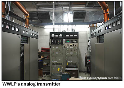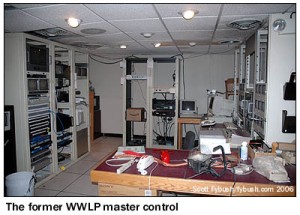 When DTV came to the mountain, the WWLP-DT transmitter (on VHF channel 11) also took up residence in the control-room area, since there wasn’t really room in the main WWLP transmitter room, located behind the master control area and through a small engineering shop.