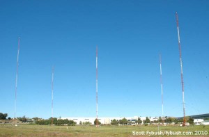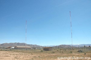 From Apple Valley, we slide southwest into Hesperia, at the southern end of the Victor Valley, where we find our last stop in the market. KRAK (910 Hesperia) has the most elaborate directional array in the valley, all for the sake of 700 watts by day, 500 watts at night. This station signed on in 1990 as KVVQ, and took the KRAK calls in 2001 when CBS needed a place to park them after many, many years in Sacramento.