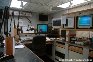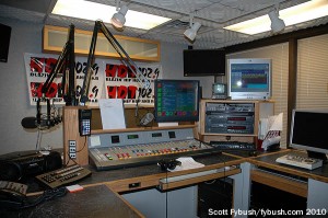 After spending some time under Radio One ownership, this group of stations is now under the Main Line Broadcasting banner, and when we visited in 2010 it consisted of WING, WGTZ (by then doing adult hits as “Fly 92.9”), urban AC WROU (92.1 West Carrollton) and hip-hop WDHT (102.9). “Hot 102.9” had just changed city of license from Springfield to Urbana, clearing the way for an outlying station, WKSW 101.7, to move from Urbana to Enon, change frequency to 101.5, and enter the Dayton market as WCLI-FM, “Click 101.5” – but that didn’t happen until after our visit.