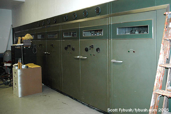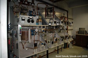 The new transmitter when we visited in 2005 was a Harris DX50, installed in what had been a spare room down the hall from the old MW50 and the GE. (There was also a 10 kW Continental on hand as an extra spare.)