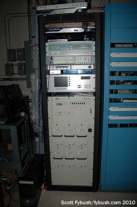The 951-foot WIPX-TV tower (it’s the one just to the left of the big WTTV tower in the photo at the top right of the page) is also home to a newer noncommercial FM signal: WHZN (88.3 New Whiteland) signed on from here in 2009, broadcasting Christian contemporary music to the area south of Indianapolis. After our visit, “88.3 the Walk” was sold to Olivet Nazarene University, which also operates WONU up in Kankakee, Illinois, south of Chicago, becoming part of the “Shine FM” network based at WONU. (“The Walk” later reappeared at another signal in the region owned by Horizon Christian Fellowship; WWDL 91.3 Plainfield signed on in 2010 from a site west of Indianapolis and briefly simulcast with WHZN before WHZN was sold off.)