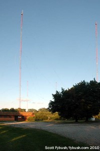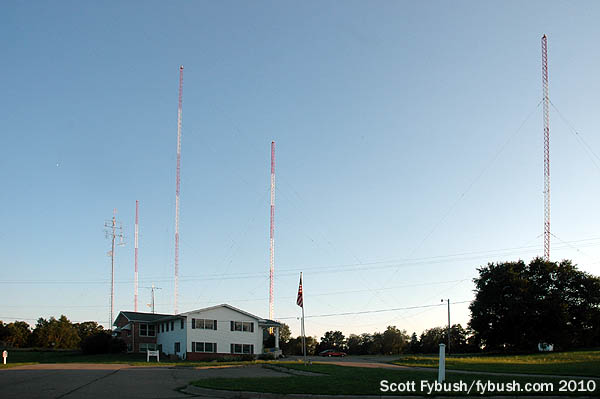 WBCK isn’t the only AM array visible from Golden Drive: go east a mile or so over I-194 to 6 1/2 Mile Road and you’ll see another four-tower array, the former WOLY (1500), still standing in the summer of 2010 more than a year after it was last on the air – and more than four years after its license was cancelled.