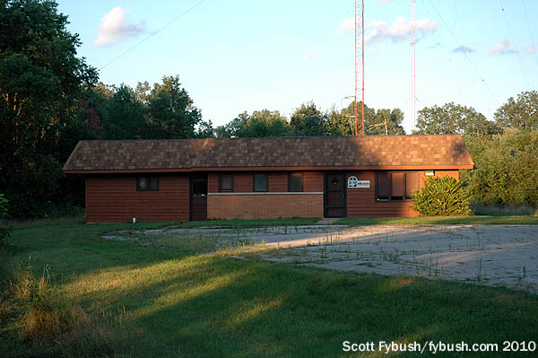 Perhaps WOLY was cursed – it signed on as WVOC on November 22, 1963, beginning its life with the announcement of President Kennedy’s assassination, and it changed calls often (WWKQ, WCLS) before ending up as WOLY in 1988. And then in 2004, WOLY failed to file for license renewal when Michigan stations were due, touching off a five-year fight for reinstatement that pitted it against an application for a power increase over at AM 1510 in Jackson, to the east. (The gist of WOLY’s argument was that its paper renewal application should have been accepted because the station’s owners lacked internet access to file the proper electronic renewal.) By 2009, WOLY had lost its fight, leaving an empty studio and these four towers standing.