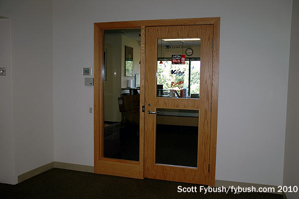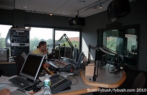 The new location lacks the visibility of the old Kiss 108 space, which had prominent signage right next to the T’s Wellington station and right alongside a busy highway – but it does provide more room for the cluster in a newer building with more parking, not to mention windows for the studios. The WJMN studio is the first one on our tour, and if you look closely at the window to the jock’s left, you can see it’s been covered over, since there wasn’t much that Jam’n would be doing to interact with the station in the next studio beyond that window. WXKS (1200 Newton) had just recently launched at that point as “Rush Radio,” and would later become “Talk 1200” before flipping to comedy in 2012. (I suspect, but don’t know for sure, that this studio has been repurposed for “The Harbor.”)
