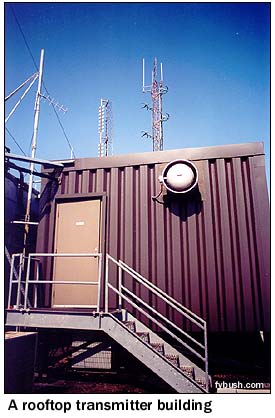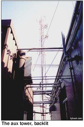 the northeast corner of the building, the auxiliary FM antennas