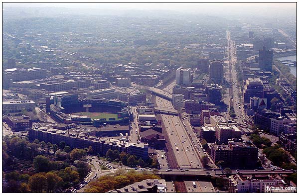 beneath the Pru. That's Fenway Park at the left, and in the haze