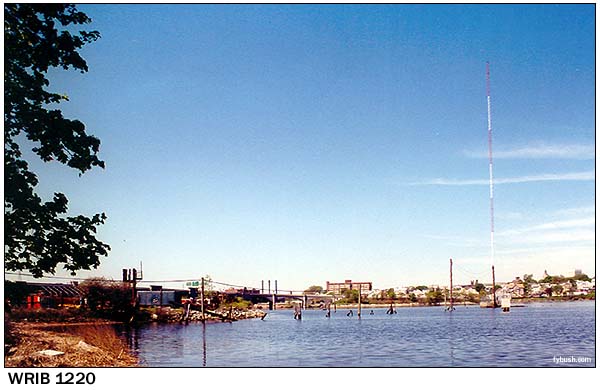 WRIB's studio/transmitter facility is hard to find unless you know where to go, being tucked on a dead-end street alongside the Seekonk River in East Providence. But with Craig leading the way, we found it - and then followed him down the slope to the side of the water to admire the tower out there in the river.