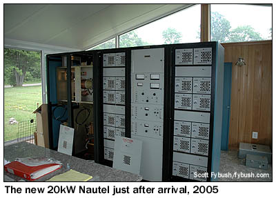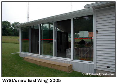 In 2005, the little building sprouted yet another sunroom addition on the east side, as Bob prepared for WYSL's biggest move yet - an increase to 20,000 watts by day and 13,000 watts during critical hours. Behind the sliding glass doors marked "News Power 1040" soon arrived a refurbished Nautel AMPFET transmitter, purchased used (but refurbished to like-new condition) after service at one of the many Canadian AM stations that's moved to FM.