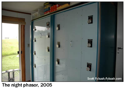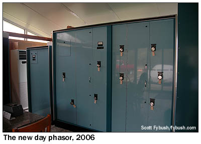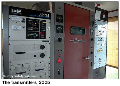 New gear, including a modern console and digital audio editor, had sprouted in the production studio across the hallway, and in the main studio next door, computer monitors, CD players and other new equipment now surrounded a different (but equally historic General Electric) main air console. Things had changed in the transmitter room at the back of the building, too, where one of the original RCA BTA-1Rs now kept company with a BE 2500-watt solid-state transmitter and a new phasor cabinet for the daytime two-tower and nighttime four-tower patterns.