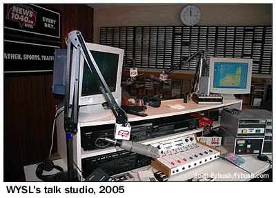 A visit to WYSL in 2005 found many changes from the little radio station I first set foot in back in 1987. Even before entering the new transmitter wing, the most obvious change was in the room to the right of the front door, once Bob's office and now a well-equipped talk studio.