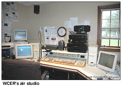 It's got a nice little studio and office facility here, too, with a production room, a talk studio and an air studio all lined up along the front wall. In back, behind the offices, sits one of the few Energy-Onix AM transmitters we've seen in action. (There's a reason 900 and 106.9 are next to each other out here - before 106.9 was a sister station to WINW, it was a sister station to 900. The AM signal signed on in the late forties as WAND, becoming WCNS by the time the FM signed on in the early sixties as WCNO. After the FM split off as WOOS a few years later, the AM side became WNYN - "Nine" - and then WTOF, paired with another FM on 98.1, before eventually becoming WCER a few years back.) From 22nd and Whipple, we head north just a few blocks to Hills and Dales Road, where we find the last Canton AM on our tour. The daytimer on 1060 (now running 5 kW into two towers) signed on in the late forties as WCMW before settling down as WOIO, calls it used for several decades before changing subtly to WQIO. As "Q-10," it became a top 40 station that's still legendary, at least in certain circles, but with the coming of FM, 1060 changed again, spending many years as WRCW before going Catholic a couple of years ago as WILB, "Living Bread Radio."