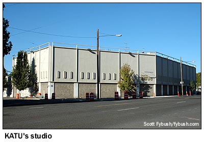 It lasted only a few months in 1959 before itself going dark, and channel 27 remained vacant in Portland for many decades thereafter...until Oregon Public Broadcasting's KOPB-TV, channel 10, secured 27 as its DTV channel. Wonder if anyone there appreciates the historic connection? It won't last long, in any event; KOPB will return to 10 as its permanent DTV channel in 2009, taking channel 27 dark again almost exactly half a century after KHTV went away.) From here, our little tour goes across the river to Portland's newest VHF station. KATU (Channel 2) didn't make it on the air until 1962, but it's been awfully stable ever since: it's been right here at 2153 NE Sandy Boulevard under Fisher Communications ownership from the beginning, and it's been an ABC affiliate since 1964, when it grabbed the affiliation from KPTV.