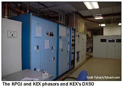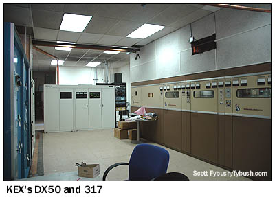 Today, as KEX chief engineer Chris Weiss gives us a tour of the place, there's not much to be seen of the Westinghouse days. Westinghouse sold KEX in 1962, I believe in order to stay under the ownership limits when it acquired WINS in New York, and the 50HG has long since given way to a Continental 317, which in turn is now a backup to a Harris DX50. Today, only the electrical panel on the front wall shows evidence of the old days.
