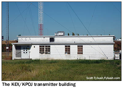 In the meantime, there's another station here now: in 2000, the former KGW (620), by then having gone through a series of new calls (KINK, KOTK, KEWS, KDBZ), lost its longtime Vanport transmitter site near the Columbia River - the same site that it shared with KEX in the thirties and forties. The old site was purchased by the Port of Portland and returned to wetlands to mitigate new construction at Portland International Airport, its history preserved at the radiotowersite.com website (including video of the two 625' towers coming down, and pictures of the transmitter building, which survived the devastating 1948 Vanport flood that took down one of the towers) - and 620 ended up once again sharing a site with KEX, this time out here in Clackamas.