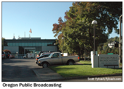 Day Five - Monday, September 25 What were the odds that every day we spent in Oregon would be warm and blue-sky sunny? Dunno...but that's the way our luck held, as our final day in the Beaver State again dawned bright and clear and our little group gathered to head out for a few more hours of Portland before heading east. Departing our downtown hotel, we drive by the KGW-TV studios at 1501 SW Jefferson, right near I-405 on the west edge of downtown. (These TV studios, too, continue to house radio facilities that are no longer related; former KGW sister station KINK 101.9 continues to rent space here, many years after King Broadcasting sold both radio and TV. KGW-TV is now part of Belo, while KINK is part of CBS Radio.) Another big cluster of radio and TV studios sits south of downtown, right back where we started our Portland visits at Entercom on SW Bancroft. The remaining CBS stations (KUFO 101.1, KVMX 107.5 and now KCMD) are on SW 1st Avenue, and a few blocks to the south, just across the tangle of highway where I-405 merges into I-5, business radio KBNP (1410) has a little building at 278 SW Arthur.