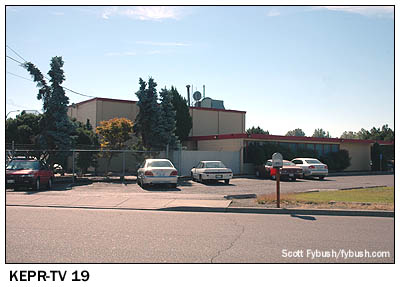 A few blocks north of the Clear Channel compound, just off the Lewis Street ramps from US 395, we find the market's CBS affiliate, Pasco-licensed KEPR-TV (Channel 19), as well as the former KEPR radio. The TV station is owned by Seattle-based Fisher Communications, which has signals in almost every Pacific Northwest market. The radio station next door, now news-talker KONA (610 Kennewick), is owned by Cherry Creek Broadcasting, which also has AC KONA-FM (105.3 Kennewick) and regional Mexican KZHR (92.5 Dayton) in this building.