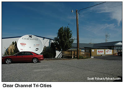Our first stop is in Pasco, not far from the bridge that takes US 395 over the river to Kennewick. At 2621 West A Street, we find what passes for a big radio cluster in the Tri-Cities: a collection of low-slung buildings housing Clear Channel's local stations.
