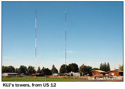 The 263-foot tower here is home to the Tri-Cities' most powerful AM outlet, talker KFLD (870 Pasco), which runs 10 kW days and 250 watts at night. (It's also where KUJ hopes to move.)