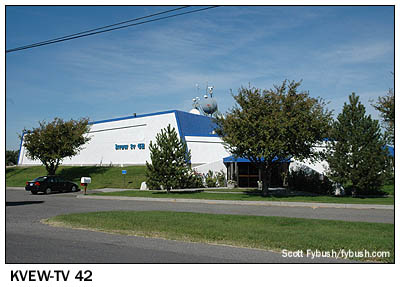 About a mile to the west, at 601 N. Edison, sits the modern-looking studio of ABC affiliate KVEW (Channel 42), the last of the Big 3 to come on the air in the market. It, and sister Yakima station KAPP-TV 35, are owned by Spokane's KXLY, which is part of the Wisconsin-based Morgan Murphy Media Group.