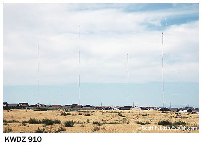 From KDYL, the highway bends back around to the east, becoming Utah 71 (12600 South, on the grid system that defines most addresses in Salt Lake County), and it's out here, near Riverton, that we find the county's southernmost AM station. KWDZ (910 Salt Lake City) is now a Radio Disney outlet, but its heritage is as KALL, one of the legendary top-40 stations here back in the sixties and seventies. Back then, 910 was part of the cluster of transmitter sites along the Jordan River, operating from a site just north of 1230 that's apparently now a golf course. It moved down here in 1990, and now runs 5 kW by day and 1 kW by night. (Are you getting the impression that this would have been a much more interesting area to have visited, say, thirty years ago? Fortunately, my good friend John Johnson, aka "John in Montana," did just that, and his photos from the era can be seen here.) There's one more AM of note out here on the south side of Salt Lake County: sports talker KFNZ (1320 Salt Lake City) was important top-40 outlet KCPX when it built its current two-tower site alongside I-215, just northeast of its southern juncture with I-15 and just a few blocks south of the old KRSP.
