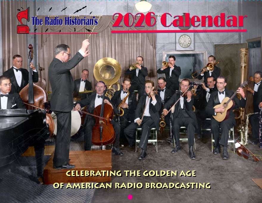 The 2026 edition of the Radio Historian’s calendar is now available. This year’s calendar features fourteen high-resolution colorized photographs of radio broadcasting’s glorious 100+ year history. Each of the images was taken from an original black and white glossy photograph and has been digitally remastered and colorized to replicate the original scene as accurately as possible. Two pages of text at the end of the calendar describe the history of each scene. Additionally, each month’s calendar page commemorates important dates in radio history.