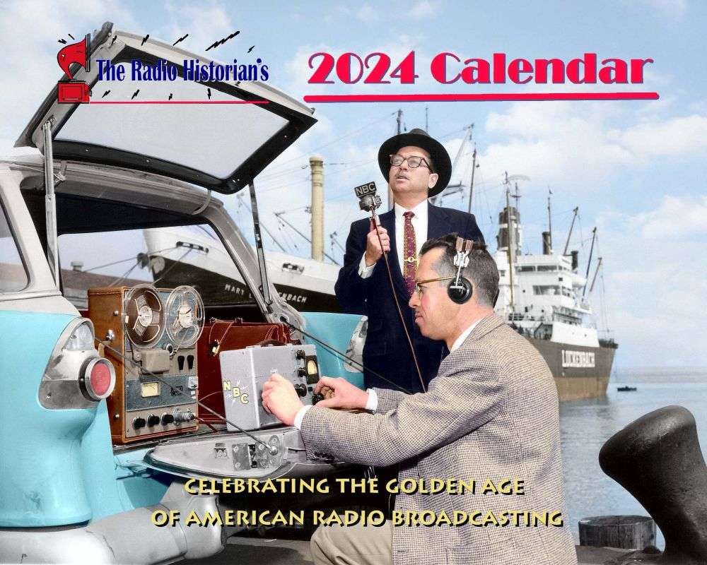 The 2024 edition of the Radio Historian’s calendar features fourteen high-resolution colorized photographs from radio broadcasting’s glorious 100+ year history. Each image originated as an original black and white glossy photograph and has been digitally remastered and colorized to replicate the original scene as accurately as possible. Two pages of text at the end of the calendar describe the history of each scene. Additionally, each month’s calendar page commemorates important dates in radio history.